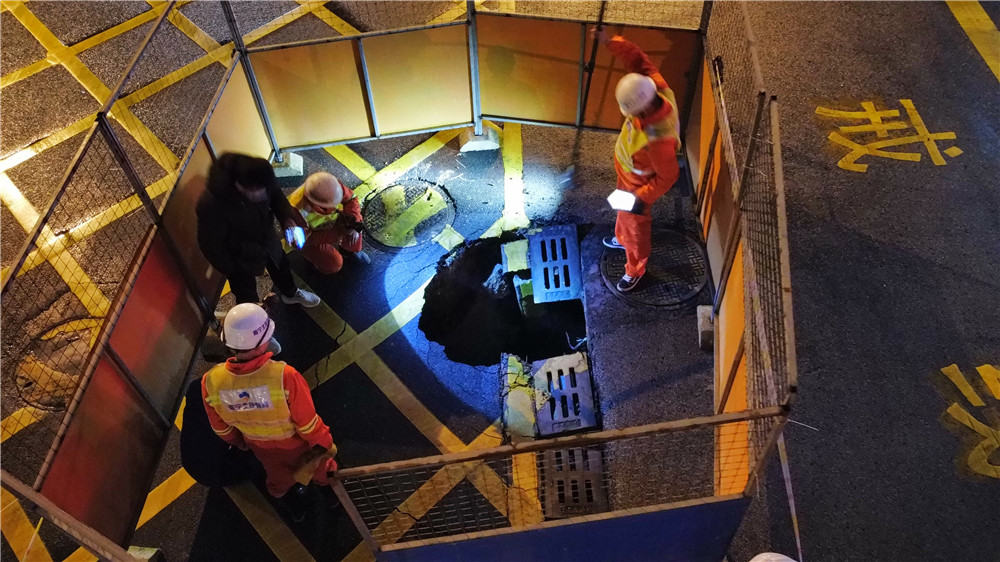 由于搶修位置地下管線復(fù)雜,施工場(chǎng)地狹窄,施工過(guò)程中,既要保障消防車輛正常出入,又要保護(hù)地下管線,同時(shí)陰雨連綿的天氣,給施工造成極大不便。搶險(xiǎn)人員想方設(shè)法,克服重重困難全力推進(jìn),經(jīng)過(guò)連夜奮戰(zhàn),第二天下午16時(shí),已完成塌陷井室修復(fù)、基坑灌注混凝土工作,目前正進(jìn)行混凝土養(yǎng)護(hù),預(yù)計(jì)2月19日前完成最后瀝青路面恢復(fù)工作。
